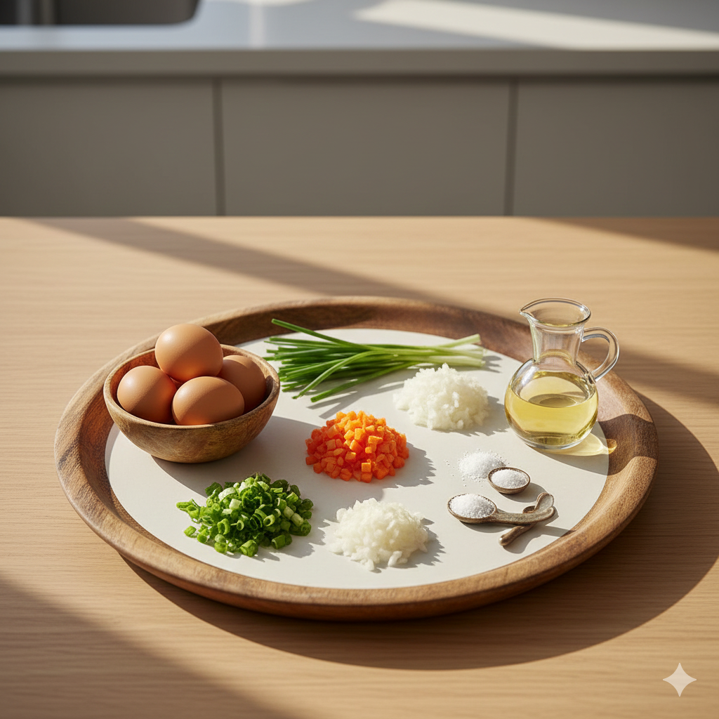 Korean Rolled Omelette is a soft, fluffy dish made by slowly cooking beaten eggs with finely chopped vegetables. The key is maintaining medium-low heat and pouring the egg mixture in three separate layers to build a thick, stable roll. Avoid creating too much foam when whisking the eggs and chop the vegetables very finely for a smooth texture. Perfect for lunchboxes, side dishes, and various home meals, it stays delicious even when cooled. Serve with a light soy dipping sauce for extra umami.